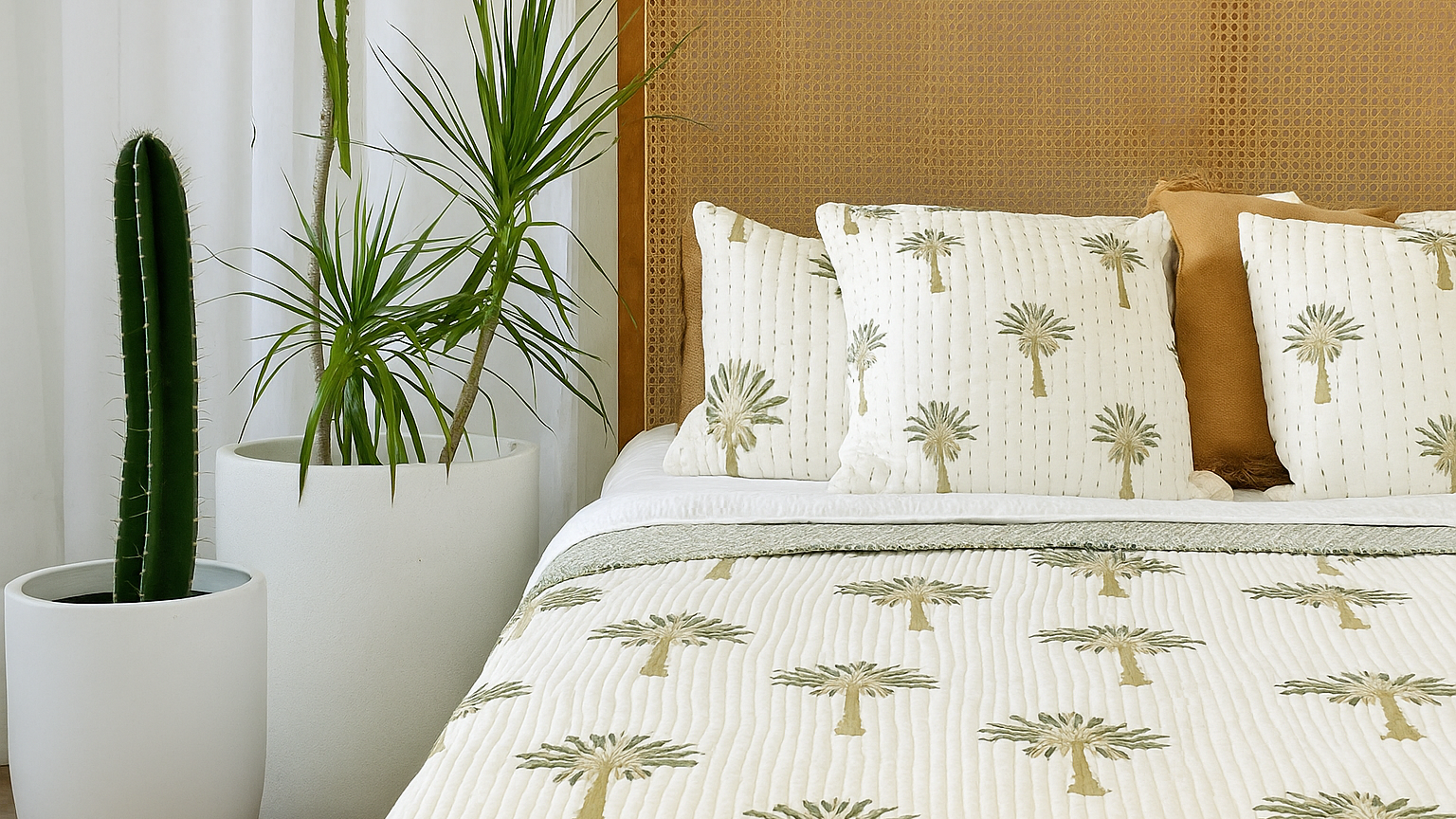 Bedsheets: Breathable, organic cotton with timeless block prints